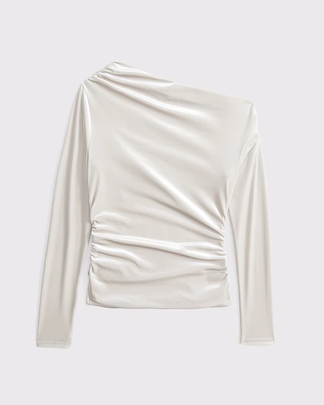 Long-Sleeve One-Shoulder Asymmetrical Draped Top