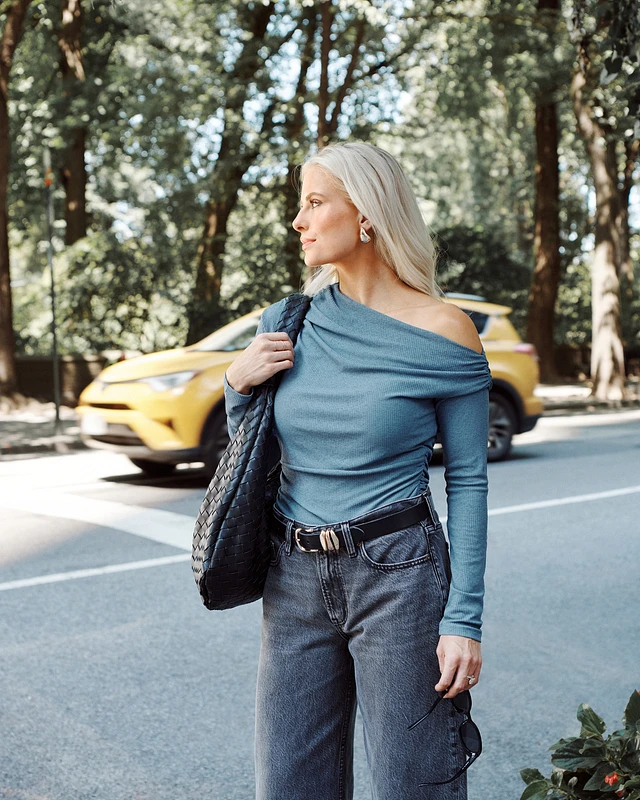 Long-Sleeve One-Shoulder Asymmetrical Draped Top