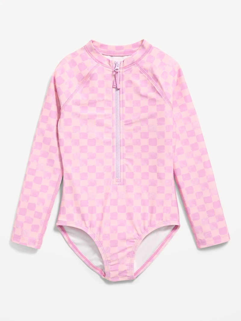 Long-Sleeve Rashguard Swim One-Piece for Girls