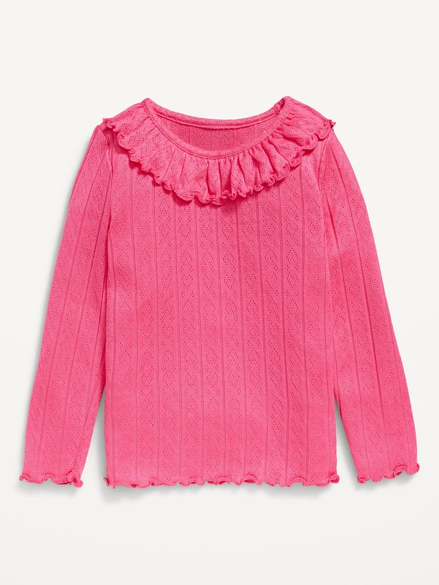 Long-Sleeve Ruffle-Trim Pointelle-Knit Top for Toddler Girls