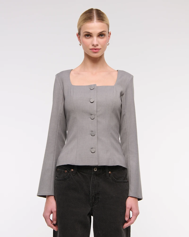 Versatile long-sleeve vest in our midweight suiting fabric and tailored fit, with button-through detail and square neckline.
