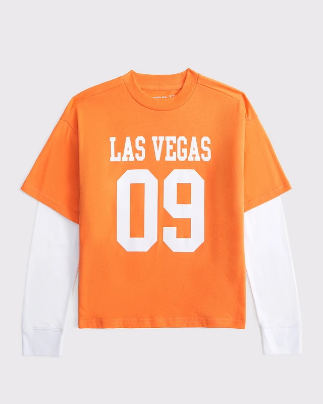 long-sleeve twofer print logo tee