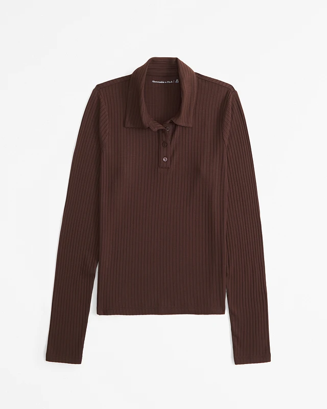 Long-Sleeve Wide Rib Polo Top