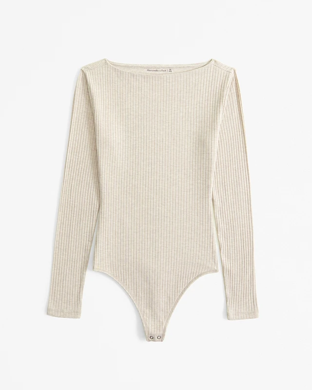 Long-Sleeve Wide Rib Slash Bodysuit