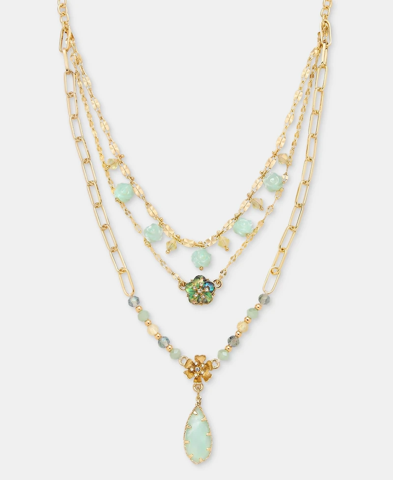 lonna & lilly Mixed Stone Flower Layered Pendant Necklace, 16" + 3" extender