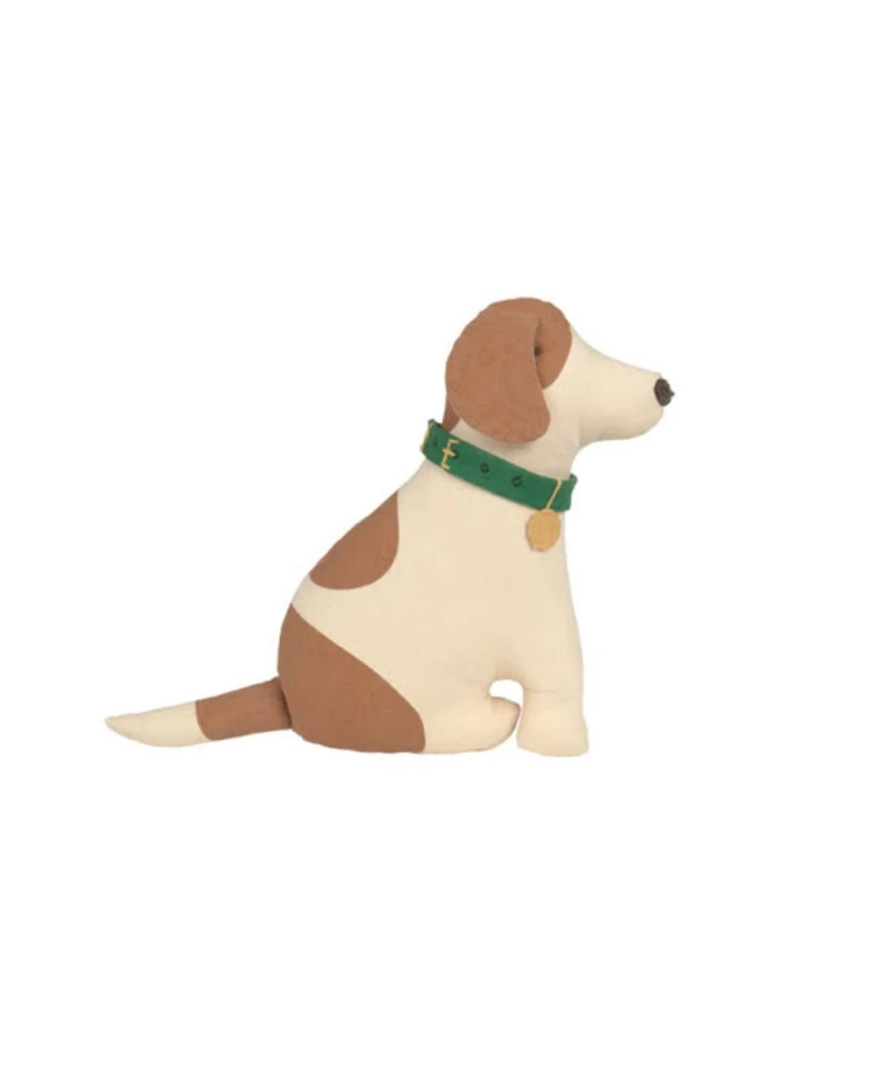Meet Cooper! Your most loyal friend . This playful cushion is shaped like a Beagle, crafted from soft cotton fabric printed with realistic details that perfectly capture the breed s charm.Its floppy ears playfully cover its eyes, while a wagging tail adds to its animated personality.The carefully crafted collar features a hand-embroidered medal with the Lc logo, giving it a special, handcrafted touch.