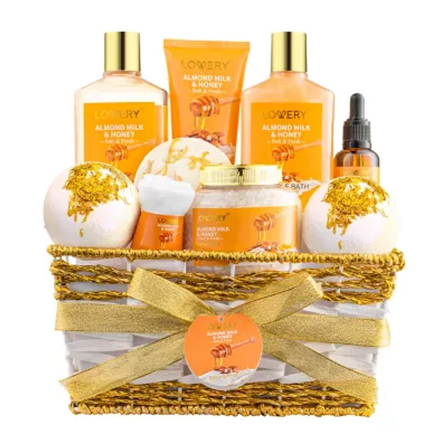 Lovery Luxe Almond Milk & Honey Spa Gift Basket - 10pc Home Bath Kit