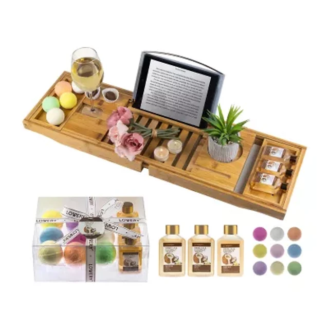 Lovery Premium Bamboo Bathtub Tray - 13pc Bath Caddy Gift Set