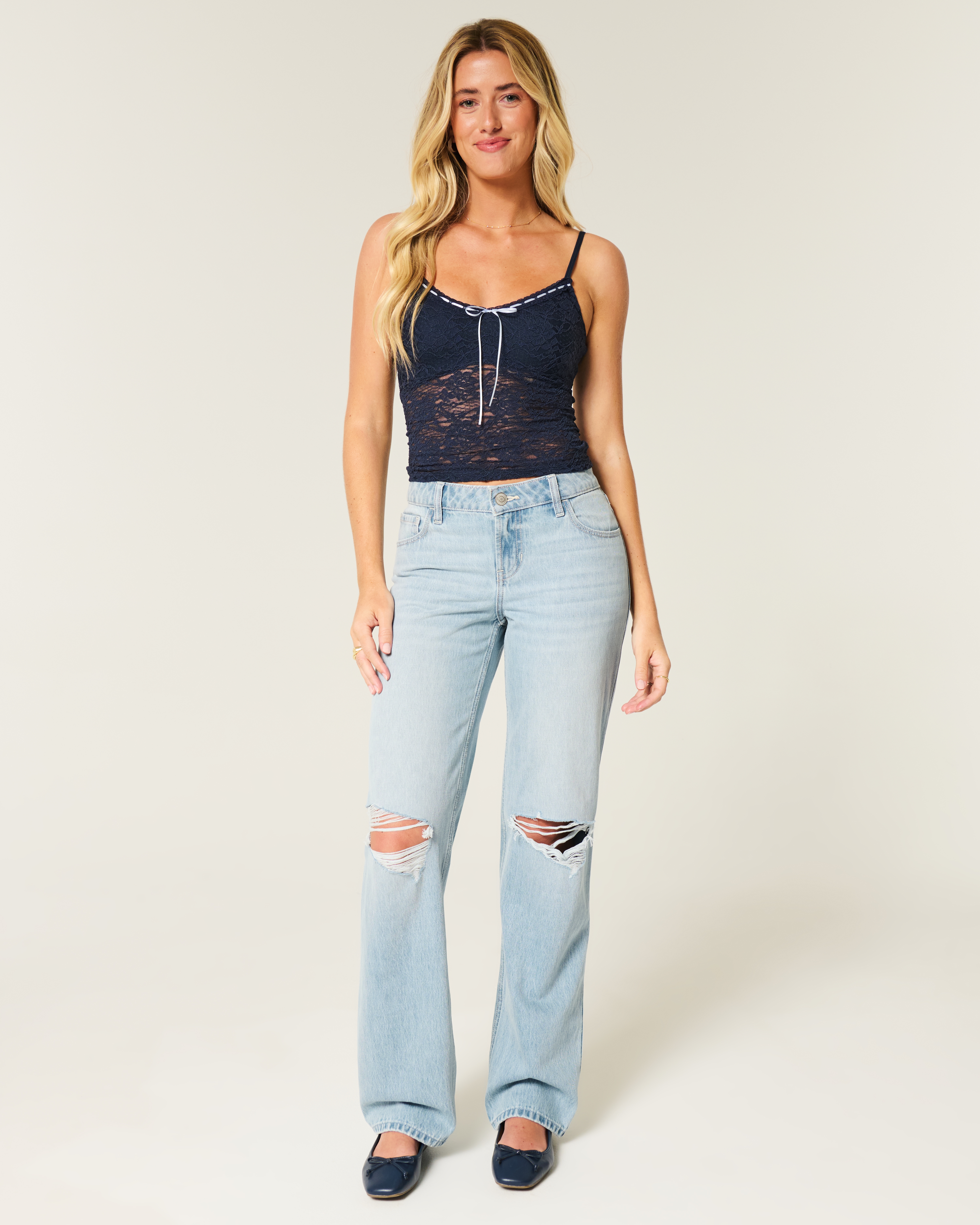 Low-Rise Light Wash Ripped Loose Jeans
