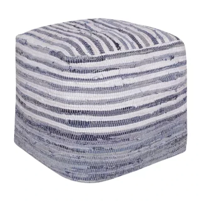 LR Home Wolfram 18" Handwoven Cotton Pouf in Blue/White