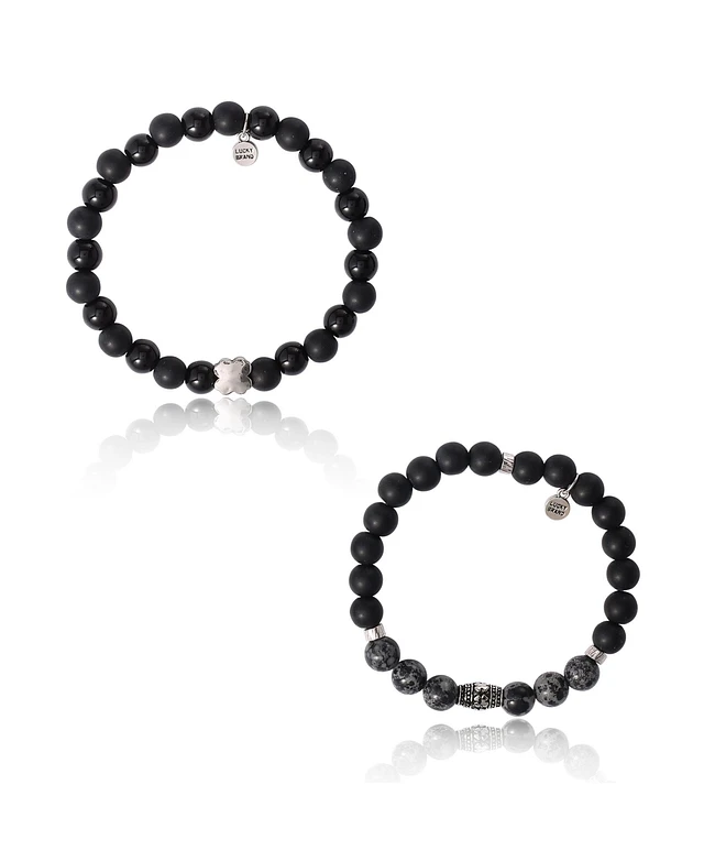 Lucky Brand Black Lava Bead Bracelets - Set of Two Natural Stone Stretch Bracelets for Men