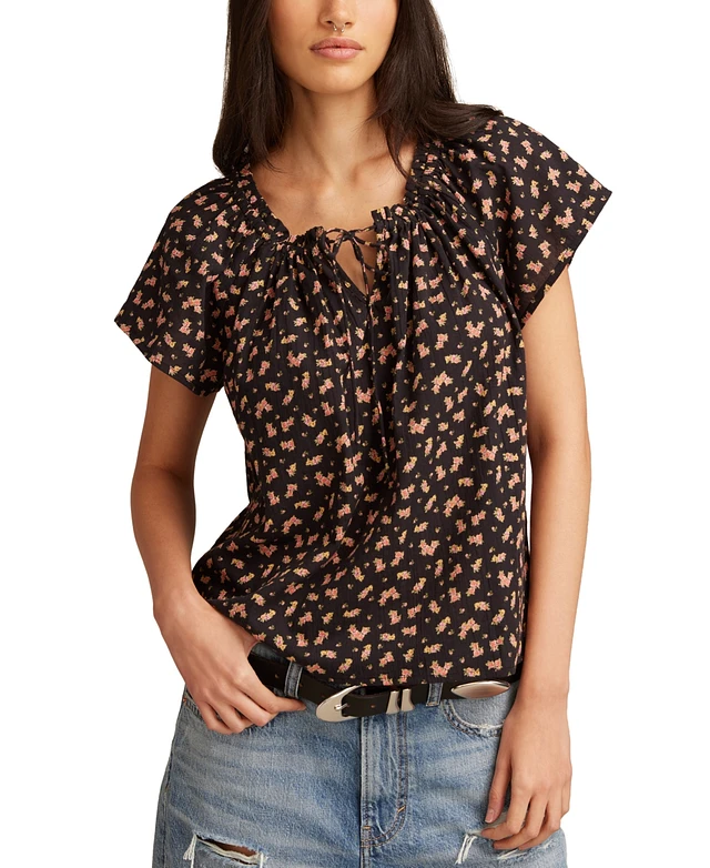 Lucky Brand Women's Printed Smocked Short-Sleeve Top