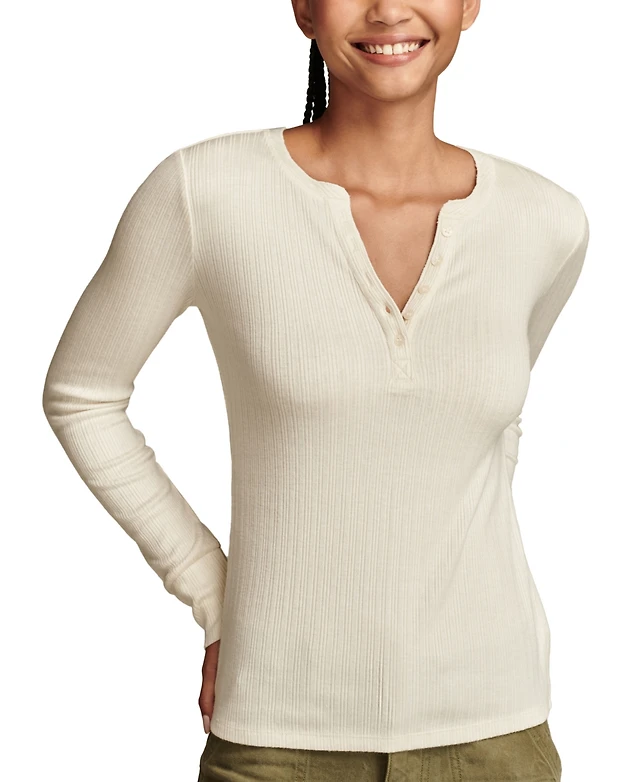 Lucky Brand Women's Cotton Cutwork Henley Tee
