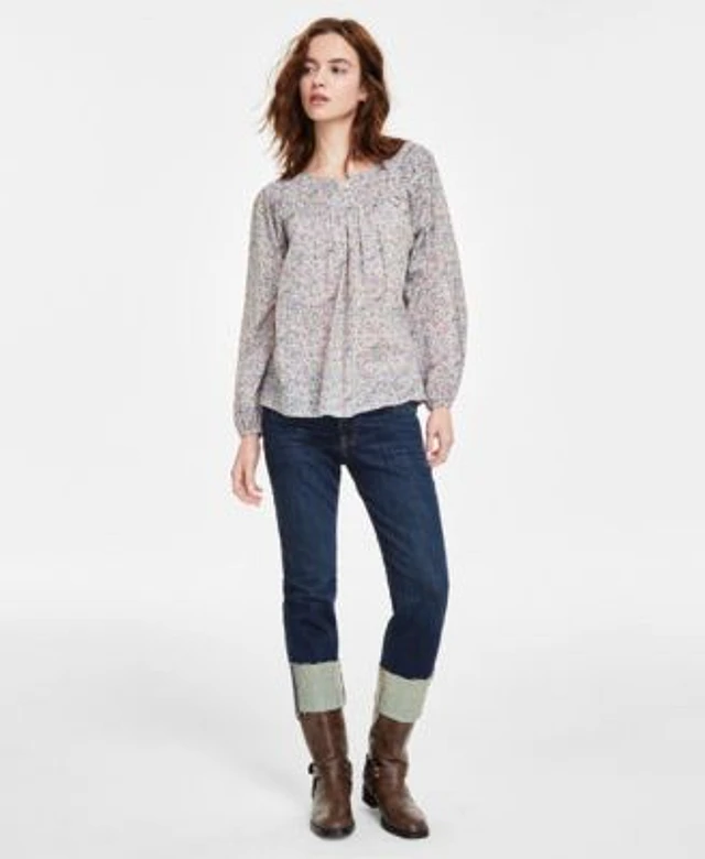 Lucky Brand Womens Smocked Blouse Sweet Crop Jeans