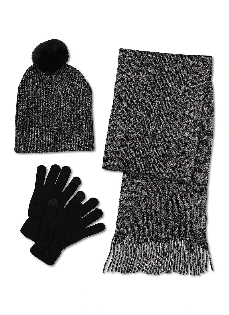 Lurex Scarf and Pom Pom Beanie with Gloves