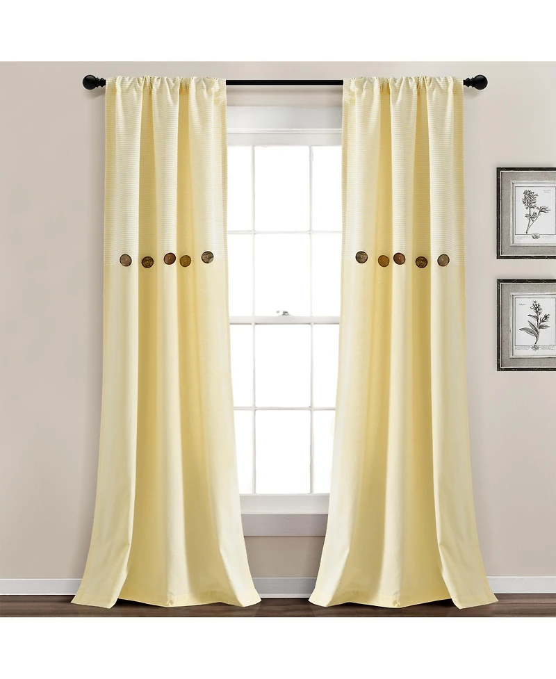 Lush Decor Farmhouse Button Stripe Yarn Dyed Woven Cotton Window Curtain Panels