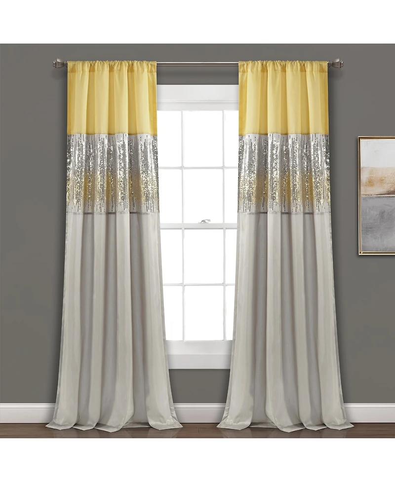 This unique design features a rod pocket on both the top and bottom allowing the panel to be hung from either end. Faux silk combined with sparkling sequins give this a modern look. the lining on the back combines to provide extra privacy and insulation.