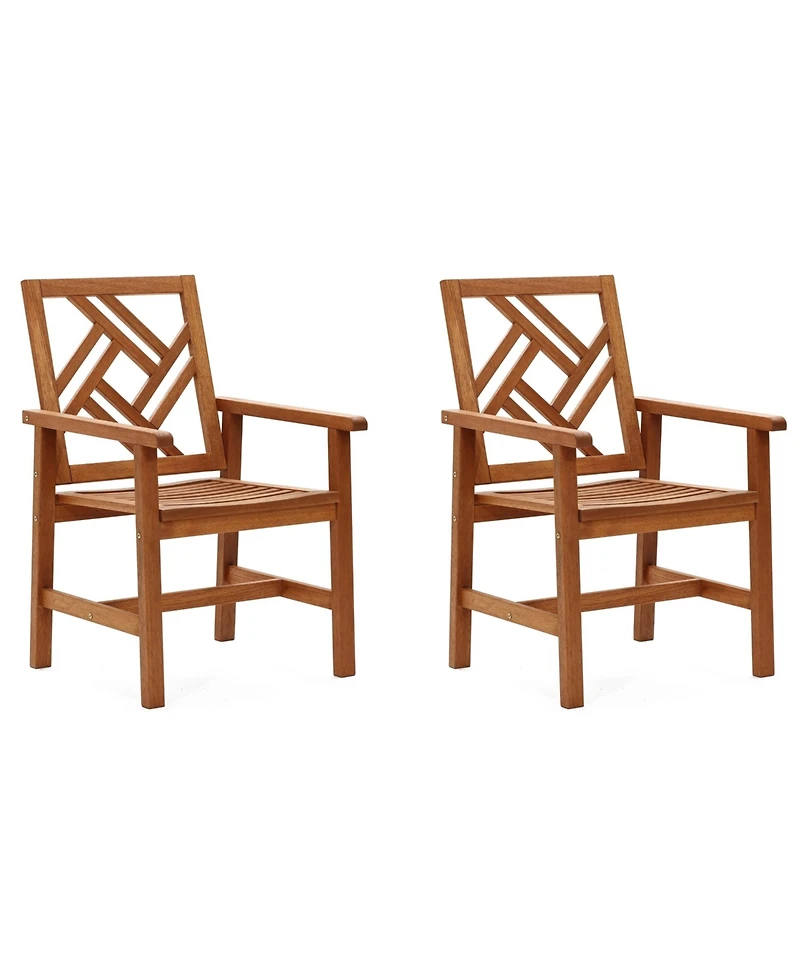LuxenHome Carmel Solid Wood Outdoor Dining Chair, Set of 2