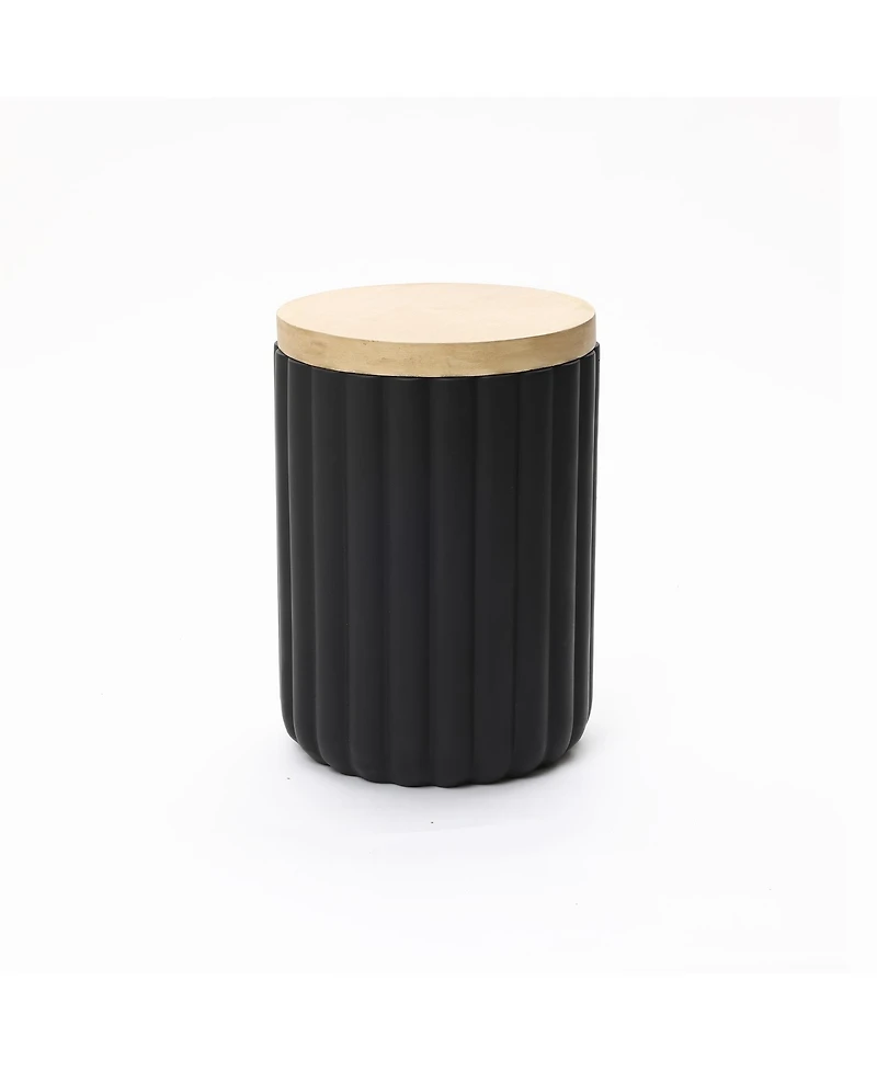 Upgrade your patio or deck with this black fluted outdoor cooler side table—designed to function as both a stylish accent table and a practical drink cooler. The removable lid opens to a built-in metal ice bucket, keeping beverages cold for outdoor parties, BBQs, and everyday patio lounging. Measuring 14.37" dia and 19.69" tall, it serves perfectly as a patio side table or deck drink table. Made from weather-resistant Mgo, this durable outdoor table offers a stable 11.8" base and a spacious 12.6" inner bucket for wine bottles, cans, and ice. A versatile piece that blends storage, cooling, and modern outdoor decor, ideal for patios, porches, decks, and sunrooms.
