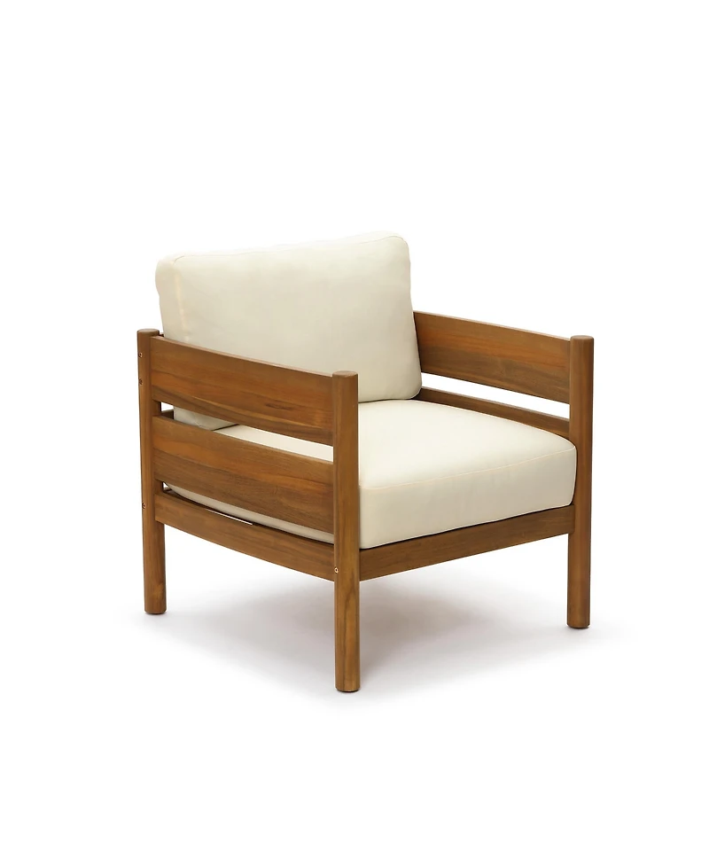Designed for comfort and natural outdoor style, this Outdoor Armchair combines a sturdy acacia wood frame with plush 5.5-inch thick cushions for a relaxed seating experience. The warm wood grain highlights the beauty of natural materials, making it a perfect addition to patios, balconies, gardens, or outdoor lounge areas. This patio lounge chair blends durability, comfort, and timeless design for everyday outdoor living.