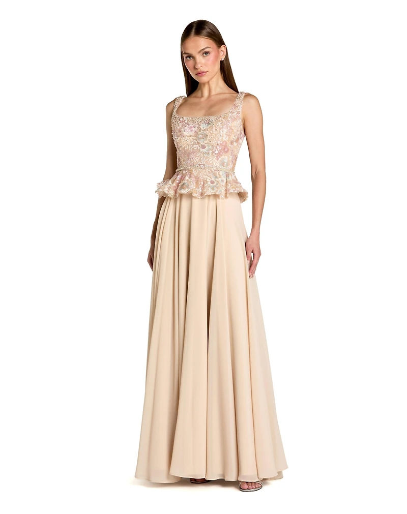 Mac Duggal Women's Embroidered Peplum Top With Chiffon Skirt Gown