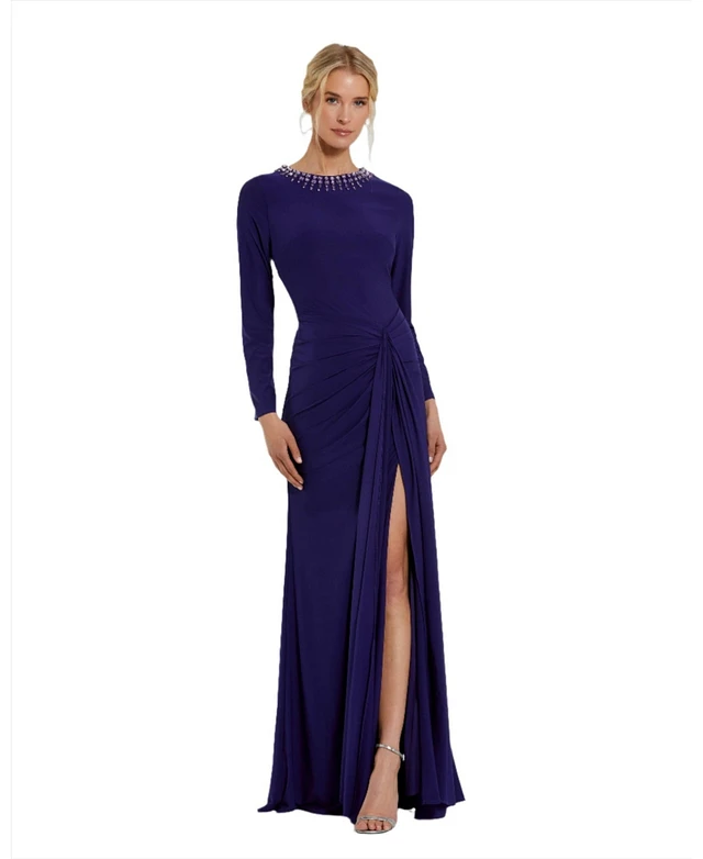 Mac Duggal Women'sLong Sleeve Jersey Gown With Beaded Cuff Sleeves