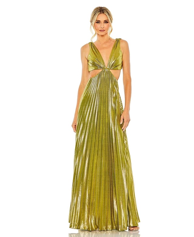 Mac Duggal Women's Pleated Metallic Cutout Gown