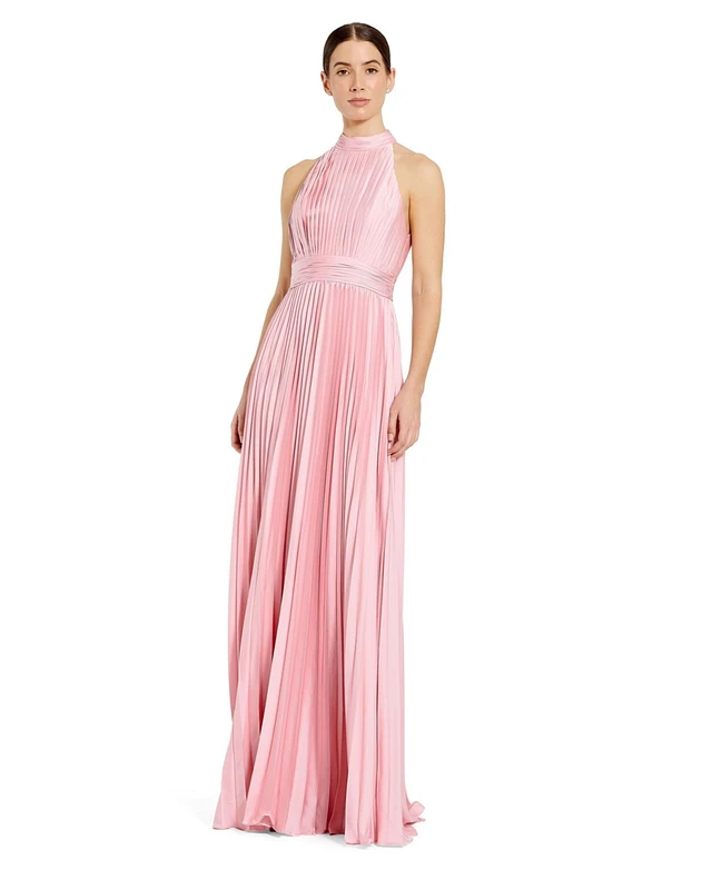 Mac Duggal Women's Pleated Trapeze Halter Neck Gown