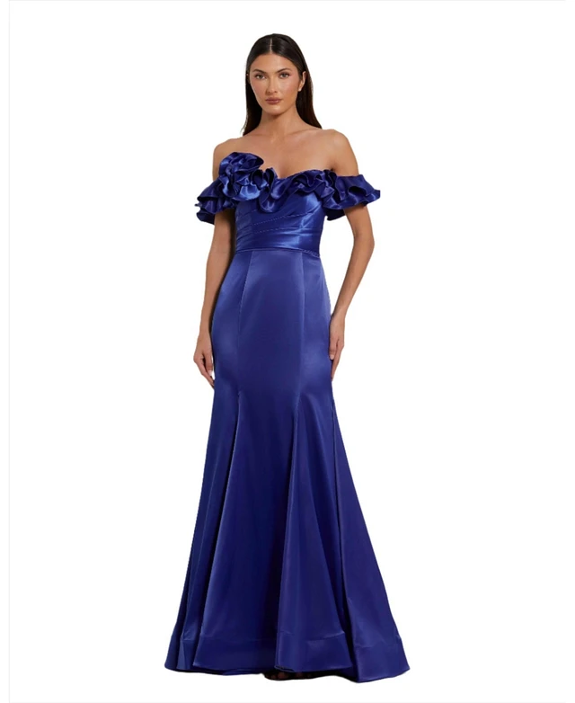 Mac Duggal Women's Satin Ruffle Off the Shoulder Mermaid Gown