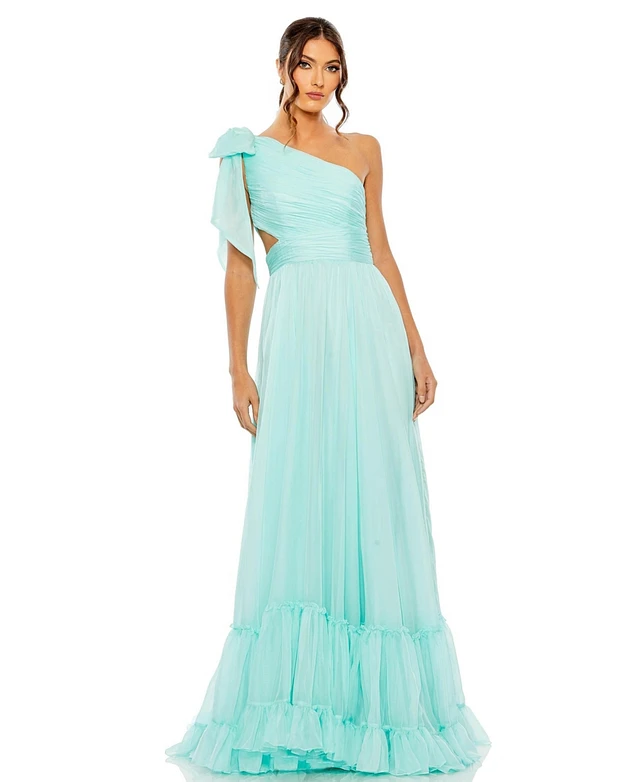 Mac Duggal Women's Tied One Shoulder Cut-Out Flowy Gown