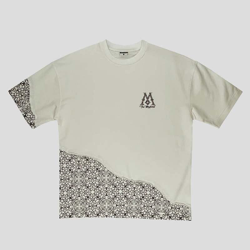 Esta camiseta The Machinist está confeccionada en una mezcla premium de 94% algodón y 6% elastano, ofreciendo una textura suave y flexible, con un diseño exclusivo que combina bloques estampados y detalles gráficos para un look moderno y único.