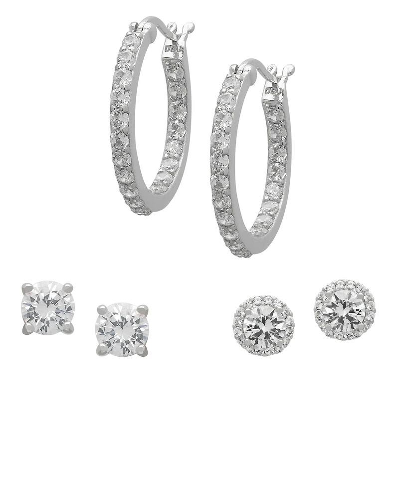 Macy's 3-Pc. Lab-Grown White Sapphire Hoop & Stud Earrings Set (5.42 ct. t.w.) in Sterling Silver
