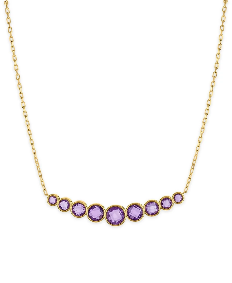 A graceful smiling curve defines this bezel-set necklace from Macy's, showcasing a vibrant arrangement of gemstones. Crafted in 14k yellow gold over sterling silver overlay, it is finished with a cable chain and a lobster clasp for a polished look.