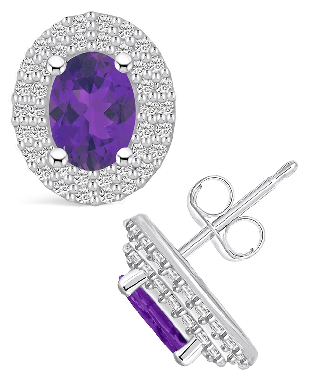 Macy's Amethyst (-/ ct. t.w.) and Diamond (/2 ct. t.w.) Halo Stud Earrings in 14K Gold