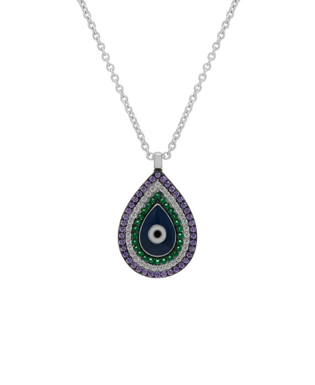 Giani Bernini Cubic Zirconia Evil Eye Pendant Necklace, 16" + 2" extender, Created for Macy's