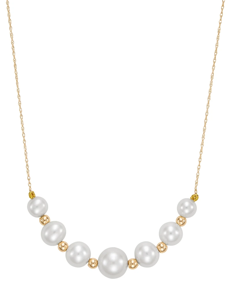 Cultivate timeless elegance with graduated freshwater pearls on this Macy's necklace. The yellow gold setting enhances the classic beauty of the gems.