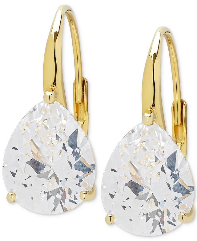 Macy's Lab Grown White Sapphire (5 ct. t.w.) Pear Drop Earrings in 14k Gold Over Sterling Silver