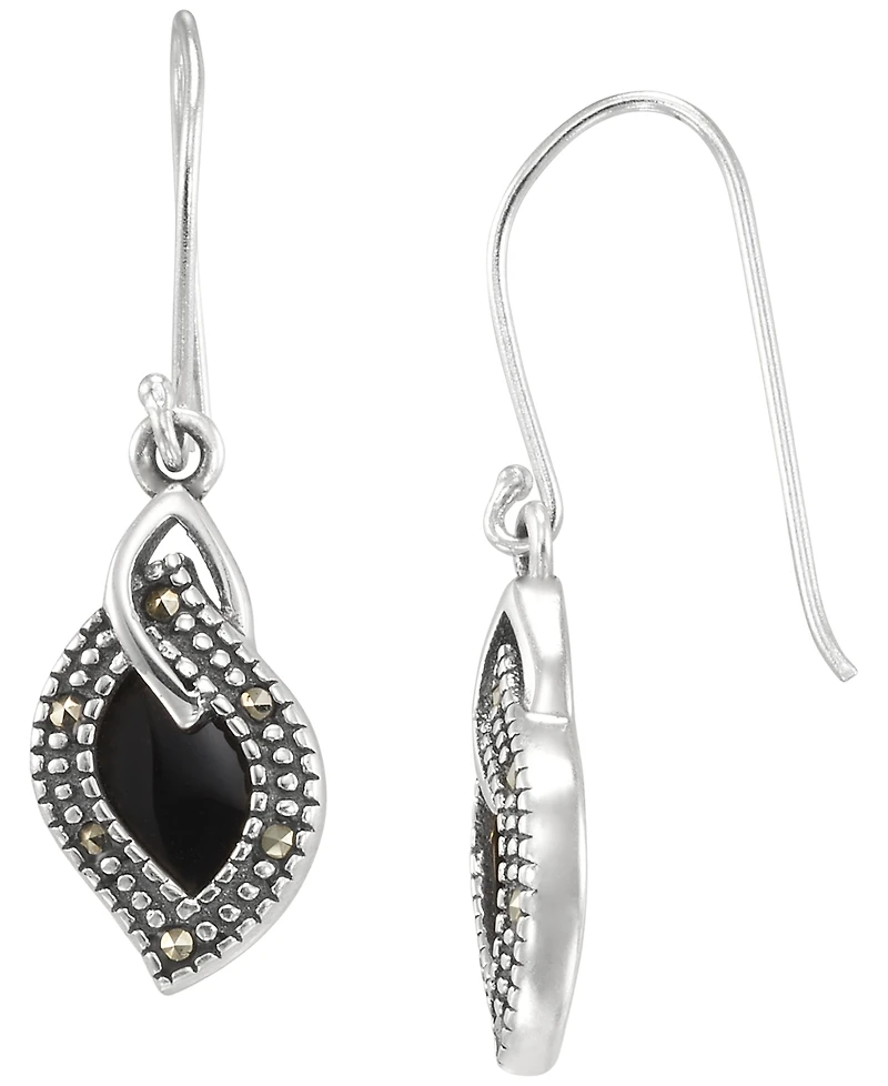 Designed with a teardrop silhouette, these wire earrings from Macy's pair marcasite with black onyx for a sleek, modern look. A fish hook closure provides a secure, comfortable fit.