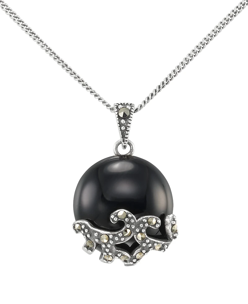Macy's Marcasite (0.13 ct. t.w.) and Onyx (4-1/2 ct. t.w.) Pendant Necklace in Sterling Silver