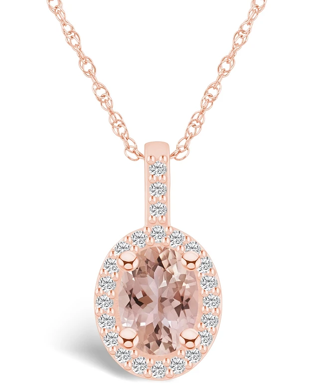 Macy's Morganite (1-1/7 Ct. T.w.) and Diamond (1/4 Ct. T.w.) Halo Pendant Necklace in 14K Rose Gold