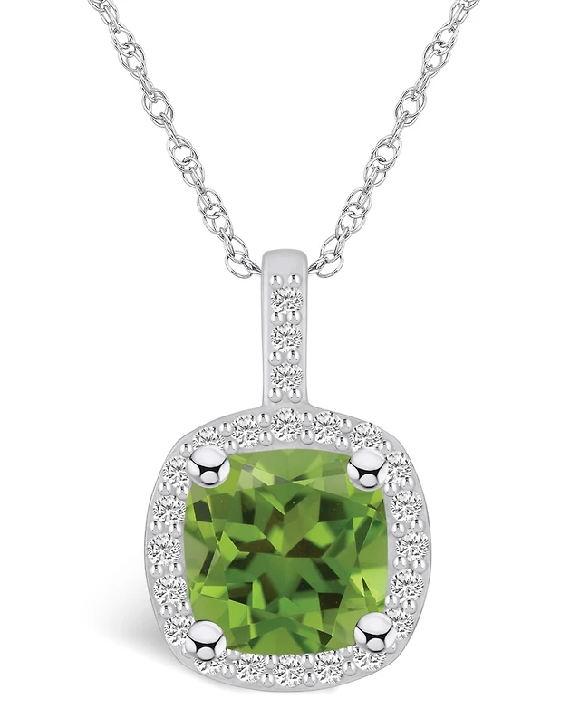 Macy's Peridot (1-2/3 ct. t.w.) and Diamond (1/7 ct. t.w.) Halo Pendant Necklace in Sterling Silver