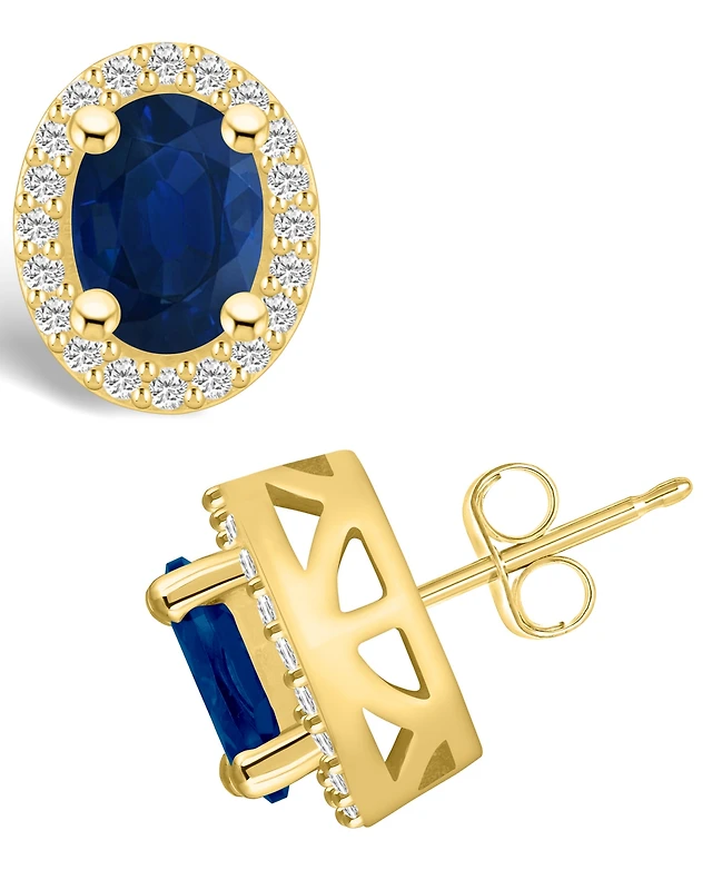 Macy's Sapphire (3 Ct. t.w.) and Diamond (3/8 Halo Stud Earrings