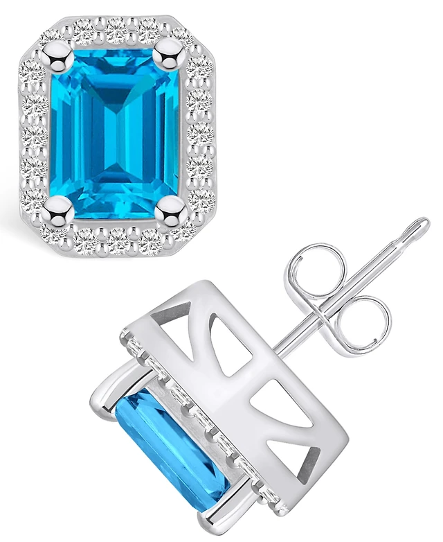 Macy's London Topaz (3-1/5 ct. t.w.) and Diamond (3/8 ct. t.w.) Halo Stud Earrings in 14K White Gold