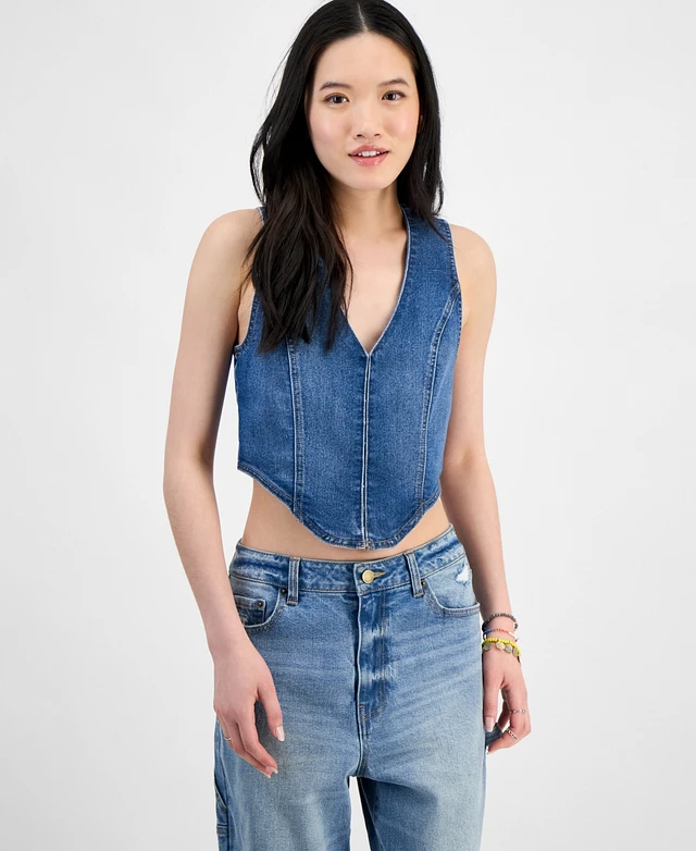 Madden Girl Juniors' Denim Hook-Front Corset Top