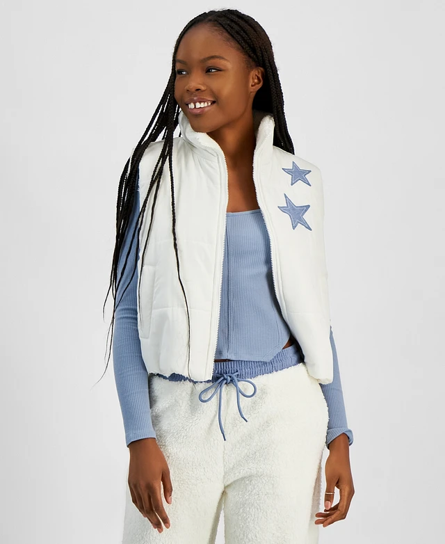 Madden Girl Juniors' Denim Patch Sherpa Lined Puffer Vest