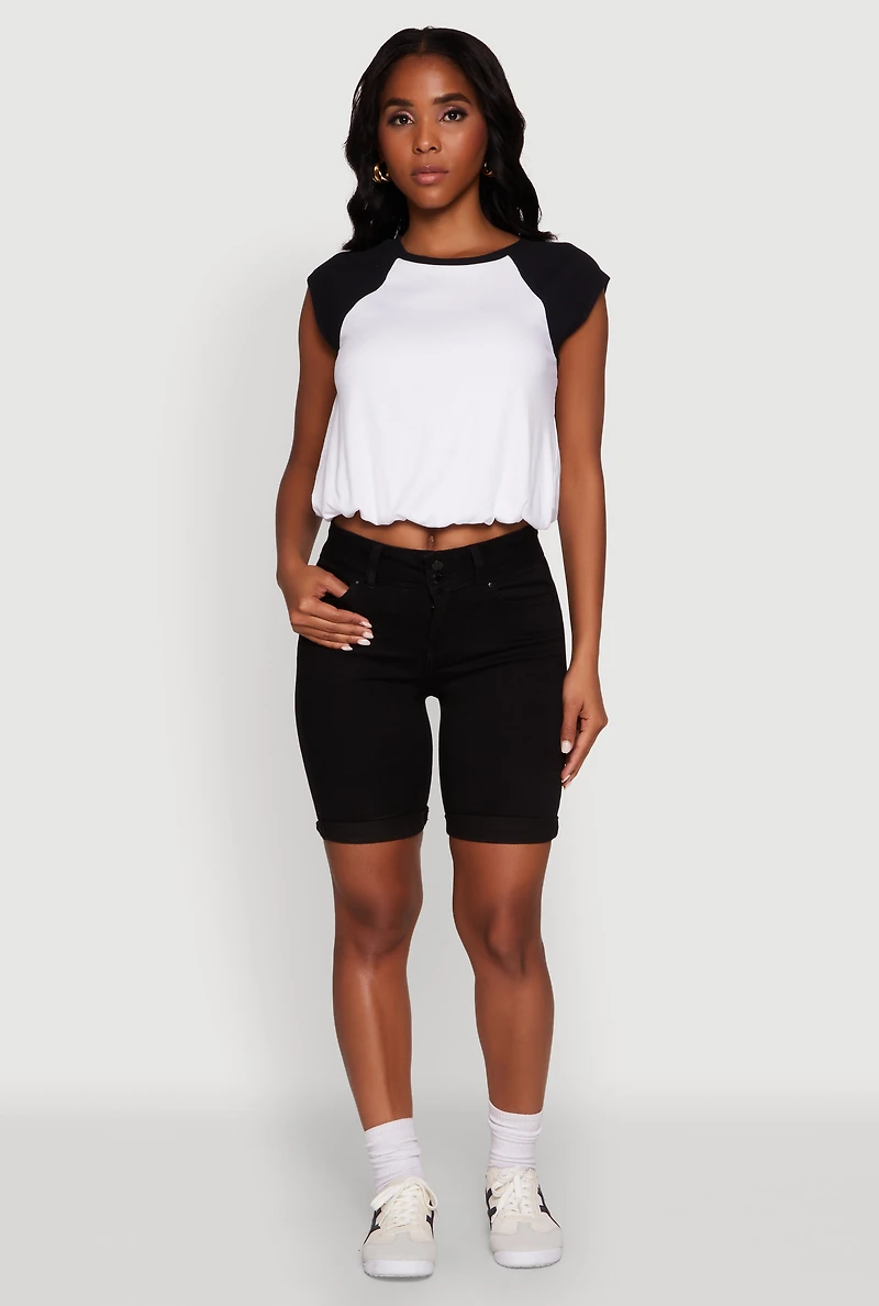 Madden Girl Raglan Sleeve Bubble Hem Crop Top