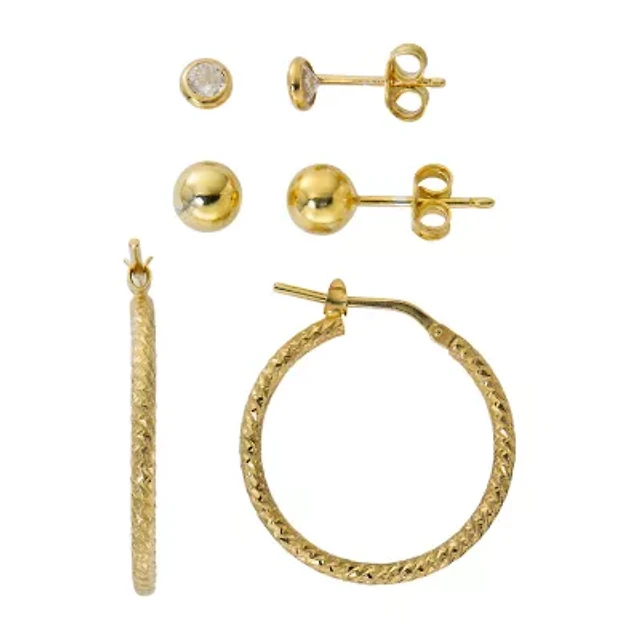 Made in Italy Womens 24K Gold Over Silver Sterling Silver 2 Pair Earring Set