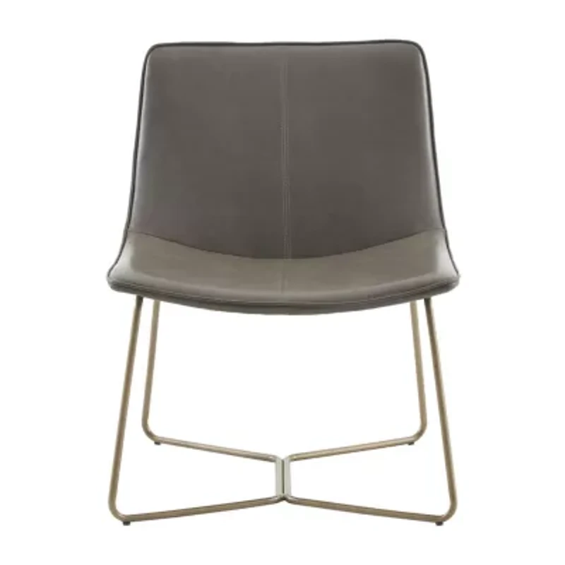 The Madison Park Hawkins accent chair adds a sharp and sophisticated update to your living room or home office. This accent chair is upholstered in brown polyurethane leather with a gold metal base to create a sleek modern look. Flaunting a simple and clean design, this accent chair brings a sleek touch to elevate your decor.