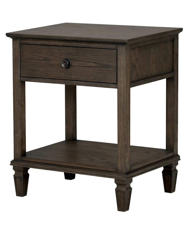 Classic wood nightstand with a smooth-gliding drawer and an open lower shelf for storage. Hand-finished with visible wood grain and tapered legs. Works great as a small nightstand, side table, or end table in any room.
