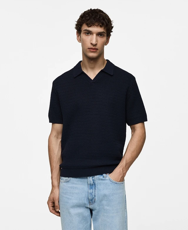 Mango Men's Cotton Braided Knitted Polo Shirt